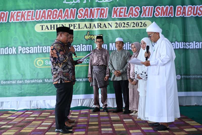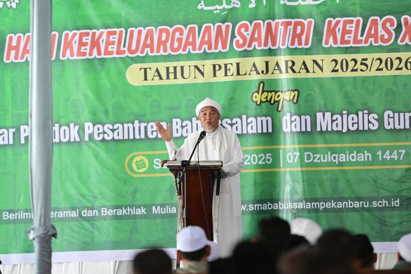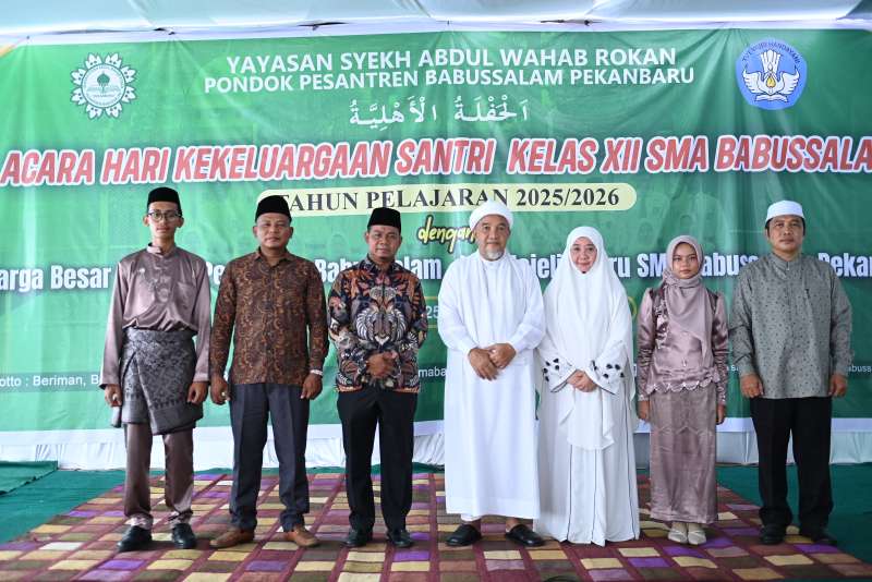Pekanbaru, Sabtu 25 April 2026 – Dalam suasana haru dan penuh kebersamaan, Pimpinan Yayasan Syekh Abdul Wahab Rokan Pondok Pesantren Babussalam, Tuan Guru Syekh Haji Ismail Royan dan Umi Hj. Yuyun Suhaira, S.K.M., menyerahkan kembali santri kelas XII SMA Babussalam Pekanbaru kepada orang tua mereka pada acara kekeluargaan yang khidmat.