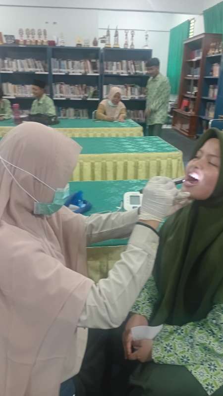 Pelaksanaan kegiatan ini didampingi oleh Wakil Kepala Sekolah Bidang Kesantrian, Ibu Maimurni, S.Pd., beserta Febriyuita, A.Md. kes, yang merupakan bagian dari tim kesehatan sekolah. Kehadiran mereka memberikan dukungan penuh sekaligus menegaskan pentingnya peran serta sekolah dalam meningkatkan kesehatan santri.