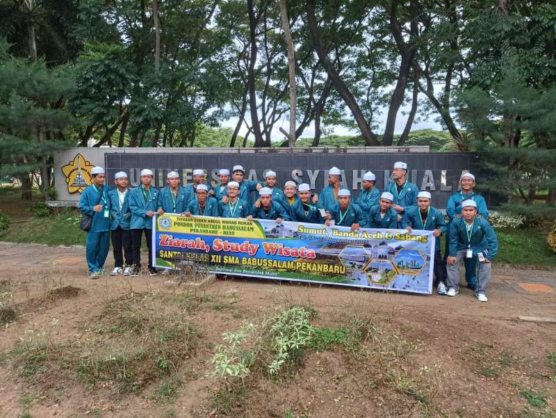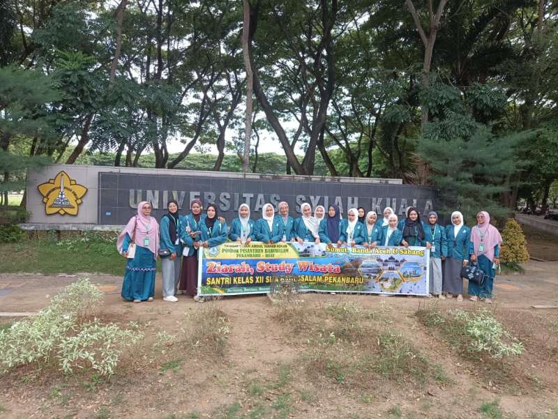 Pekanbaru, 20 November 2025 — Sebagai bagian dari rangkaian program ziarah dan studi wisata kelas XII SMA Babussalam Pekanbaru ke wilayah Sumatera Utara dan Aceh, rombongan santri dan guru pendamping mengunjungi Universitas Syiah Kuala (UNSYIAH) di Banda Aceh. Kunjungan ini bertujuan memberikan pengenalan langsung kepada para santri mengenai jenjang pendidikan lanjutan, khususnya dunia perguruan tinggi.